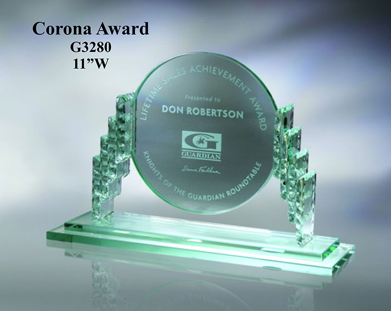 [G6420] Jade Glass Pyramid Awards on Step ..